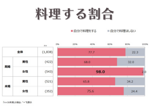 既婚者で子どもがいる家庭だと、サボるわけにもいかないので、必然的に自炊する女性の割合が多め。