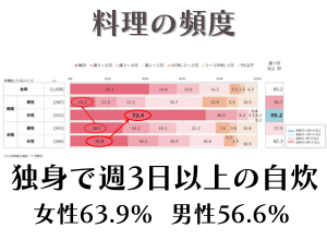 「普段はしないけど休みの日は自炊する」「月に数回なら自炊する」といった女性も含めての調査内容です。