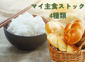 - 主食を自分で用意する場合は、冷凍ご飯、冷凍パン・常温保存パン、オートミール、市販のパックご飯がストック可能。
